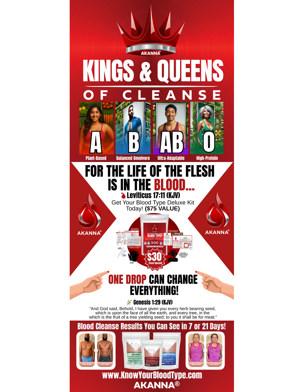 Pay just $199 after the 15% discount! Purchase your Kings & Queens of Cleanse Retractable Banner while supplies last! In 72-hours this link will go away!